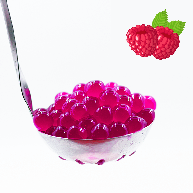 Fruit pearls, or popping boba, are made from fruit juice. They will color all your drinks and surprise you in the mouth with their explosion of freshness and fruity flavors.
